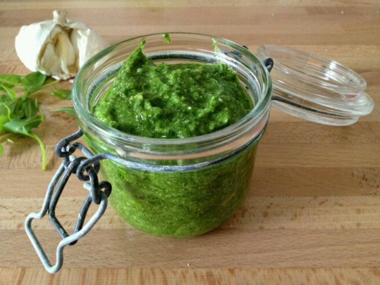 Doe je pesto er in. Roer erin tot de vetheid wat weg is