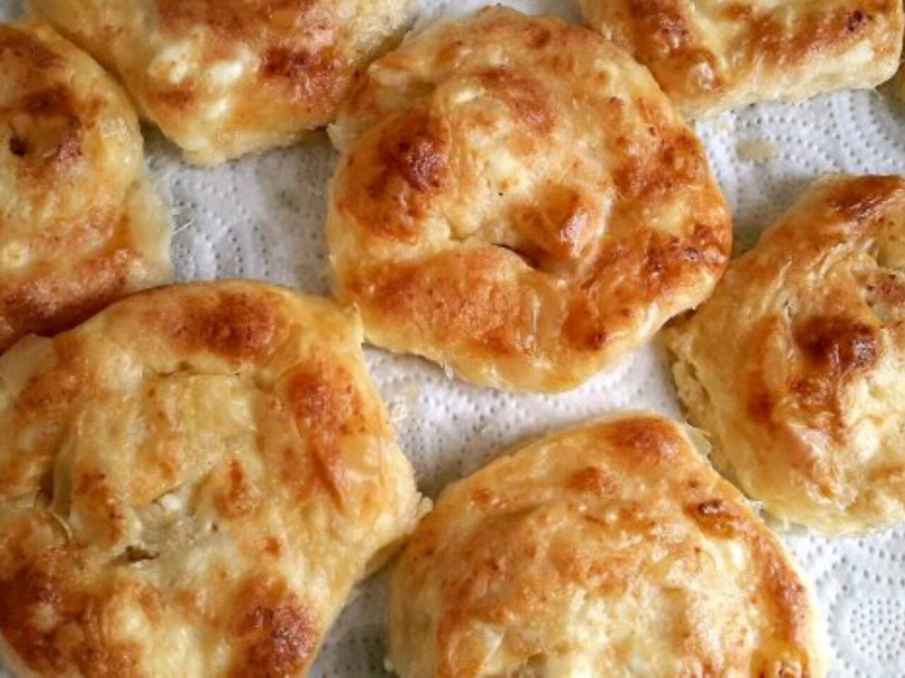 Смесват се съставките.Оформят се малки баници и се настъргва кашкавал.Пече се до готовност
