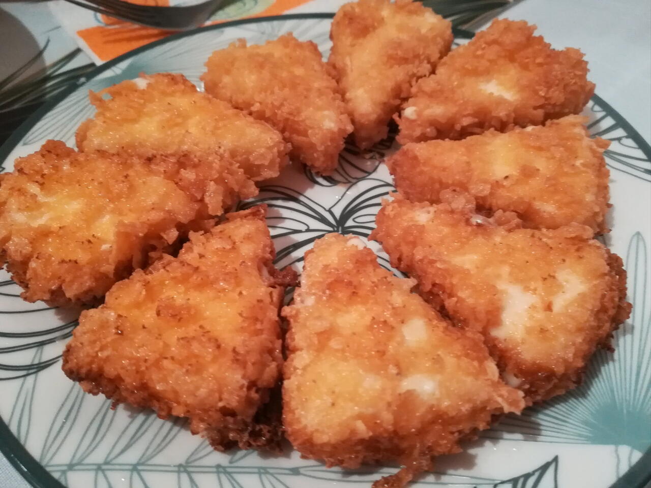 Сиренцата се овалват първо в брашното, след това в разбитото яйце и накрая в натрушения корнфлейкс.
