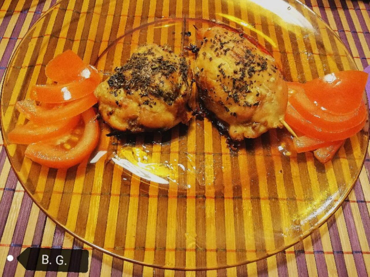 Нарежете надлъжно филето , за да се получат две парчета. Поръсете черен пипер и сол. Подредете сушени домати, каперси и моцарела на малки парчета. Завийте внимателно и закрепете с клечки за зъби, така че да станат рулца.