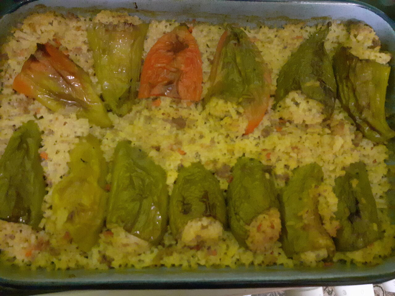 Пълним чушките със сместа а останалия ориз просто положете около чушките