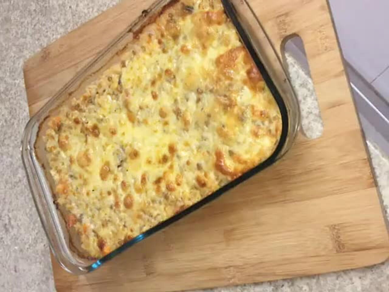 Cubra com queijo mussarela e leve ao forno para dourar.