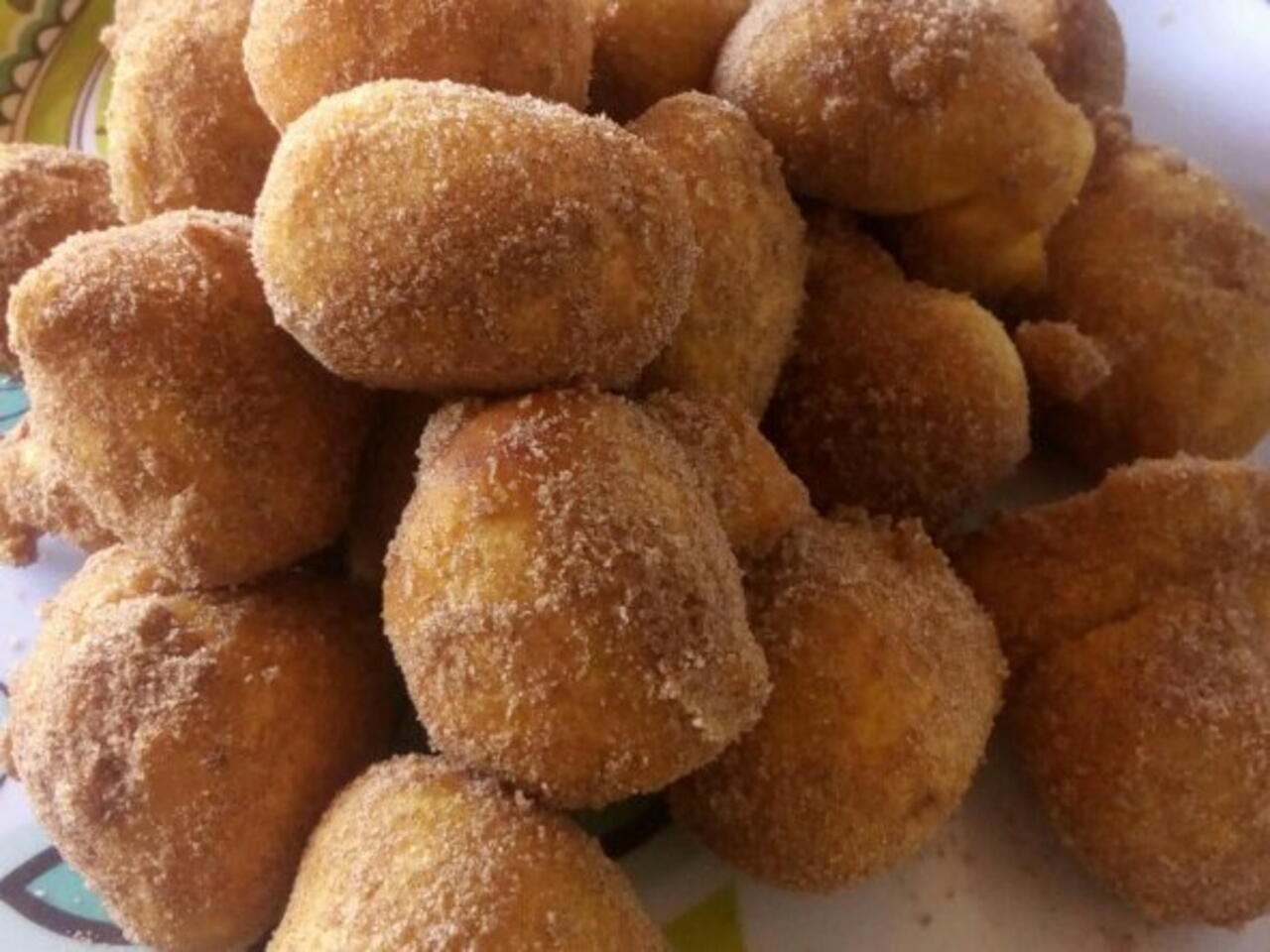 Frite em óleo as colheradas. Faça uma mistura de canela e açúcar e polvilhe por cima.