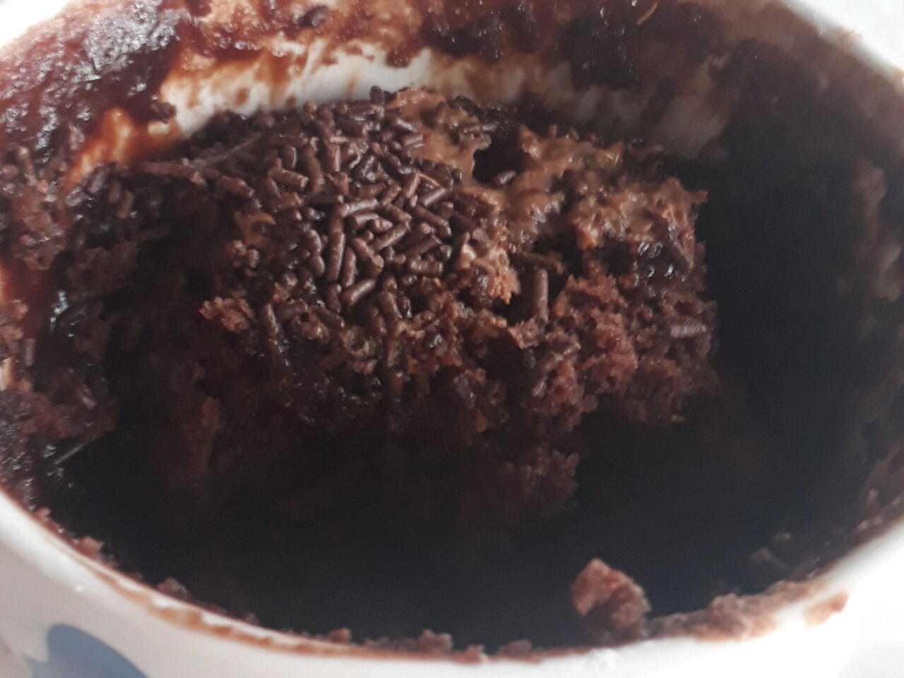 Na xicara coloque o ovo o óleo o leite depois mexa bem.