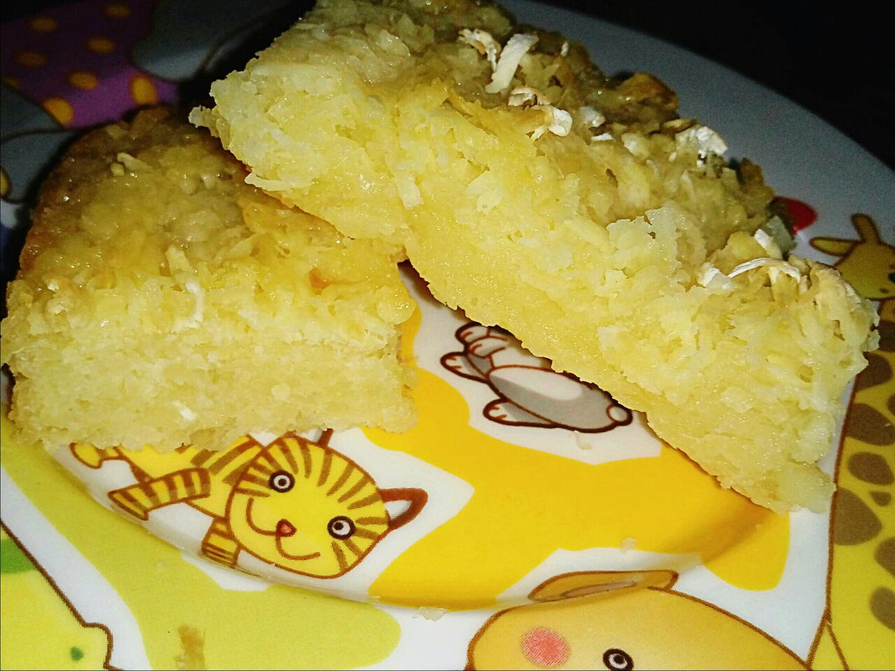 Coloque em uma forma quadrada ou redonda ,jogue coco ralado ou mandioca ralada por cima antes de levar ao forno e asse por uns 40 a 50 mn em forno pré aquecido a 180 graus