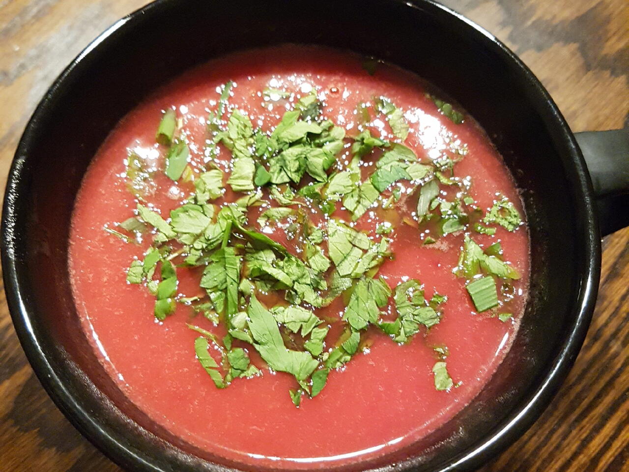 Depois de pegar pressão cozinhar por 15min e bater no liqüidificador ou mix. Acrescentar cheiro verde.