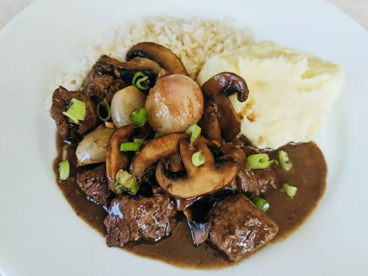 Na frigideira que fritou a carne, derreta 2 colheres de manteiga e dar uma cozinhada nos champignons (pode ser aqueles em conserva) e reserve;