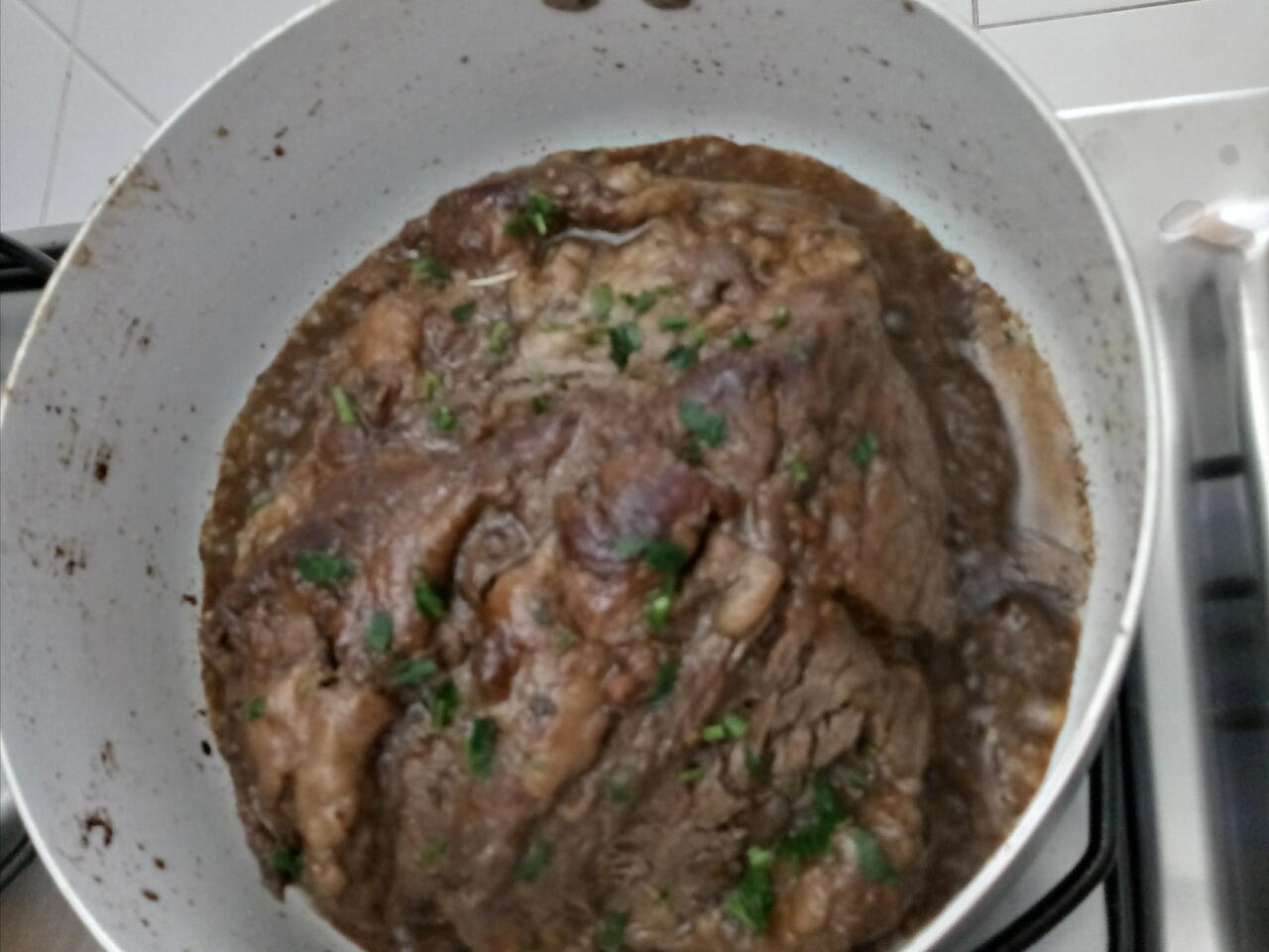 Coloque em uma panela antiaderente no fogo baixo e vai assando devagar pingando água.