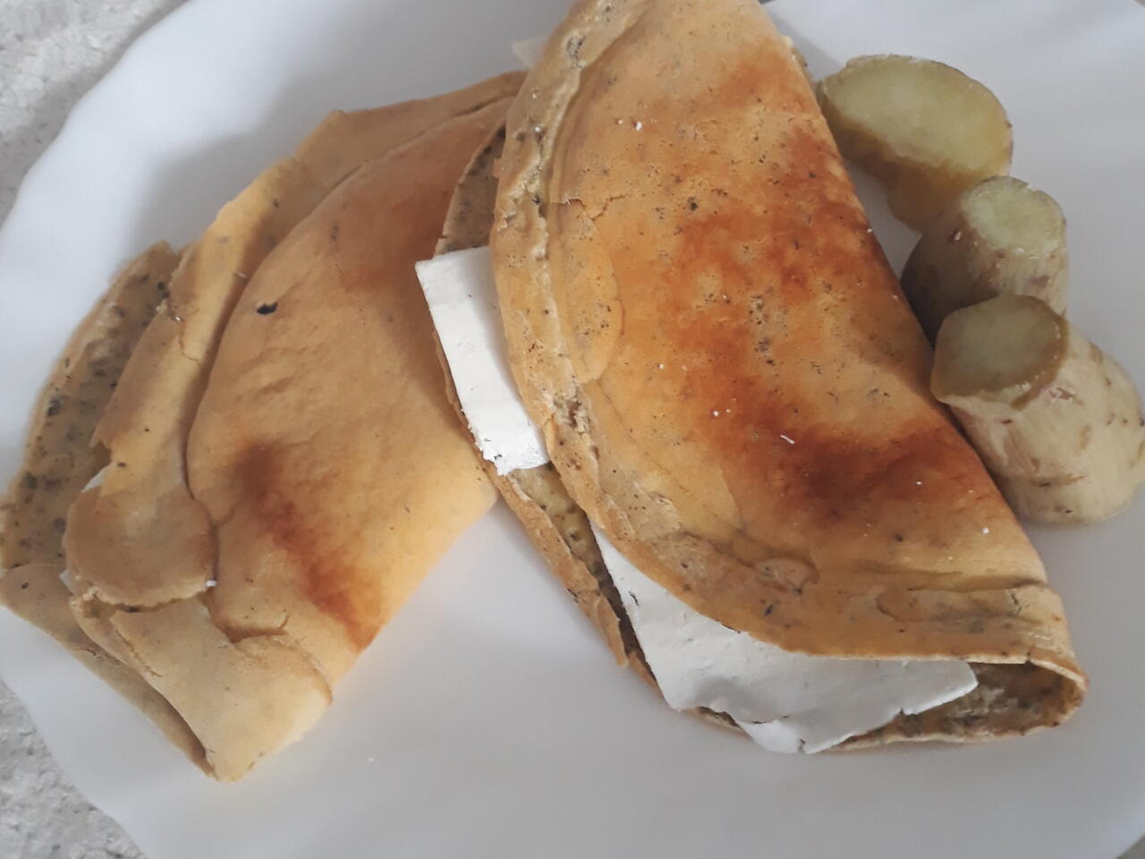 Coloque a frigideira aderente no fogo e coloque a mistura, quando forma e cozinha o disco coloque no prato e adicione o recheio com queijo e mel. OBS: pode fazer doce ou salgado combina com os dois.