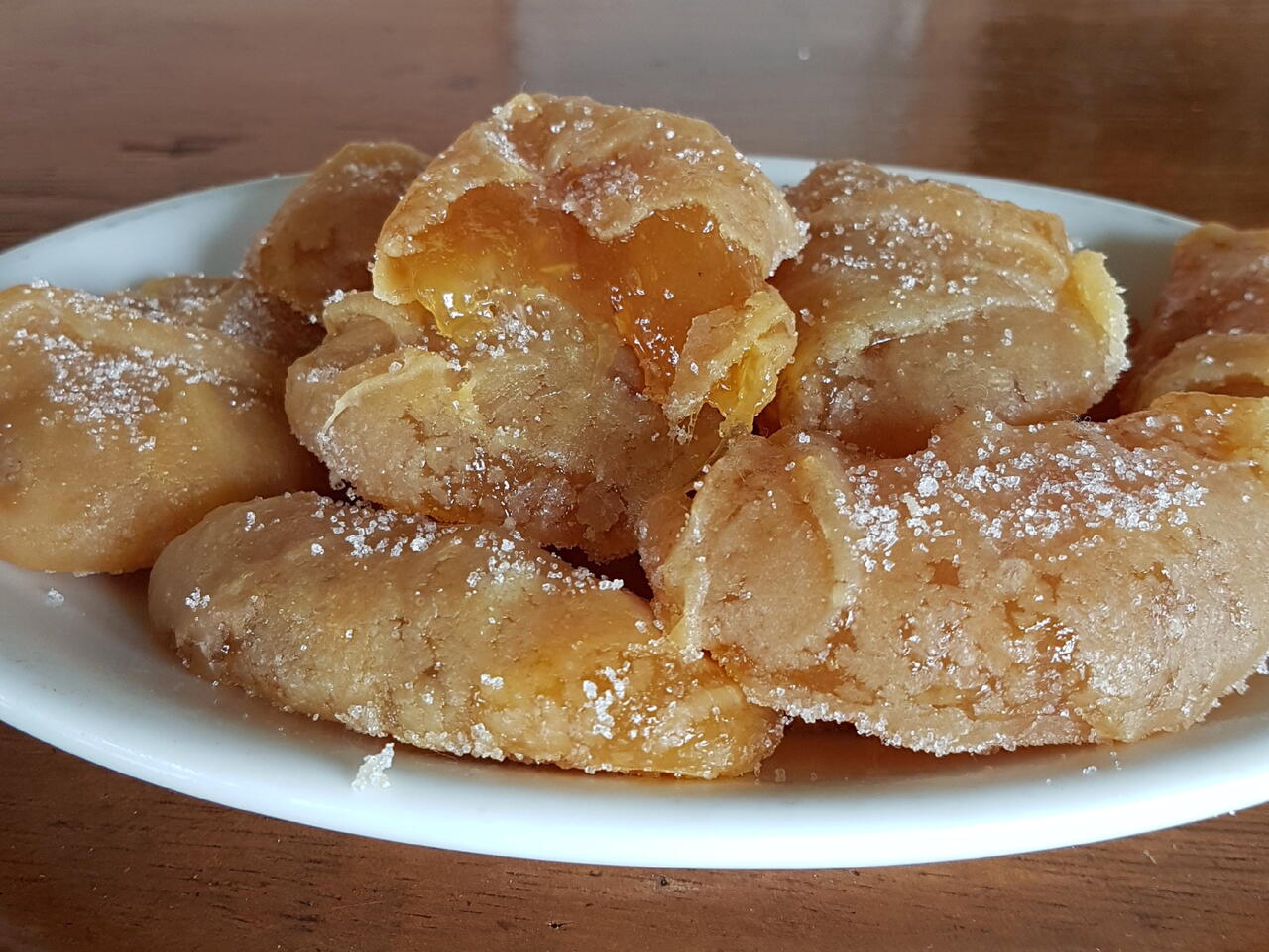 Espalhe açúcar em uma forma e vá colocando colheradas, deixe descansar de um dia para o outro para cristalizar;