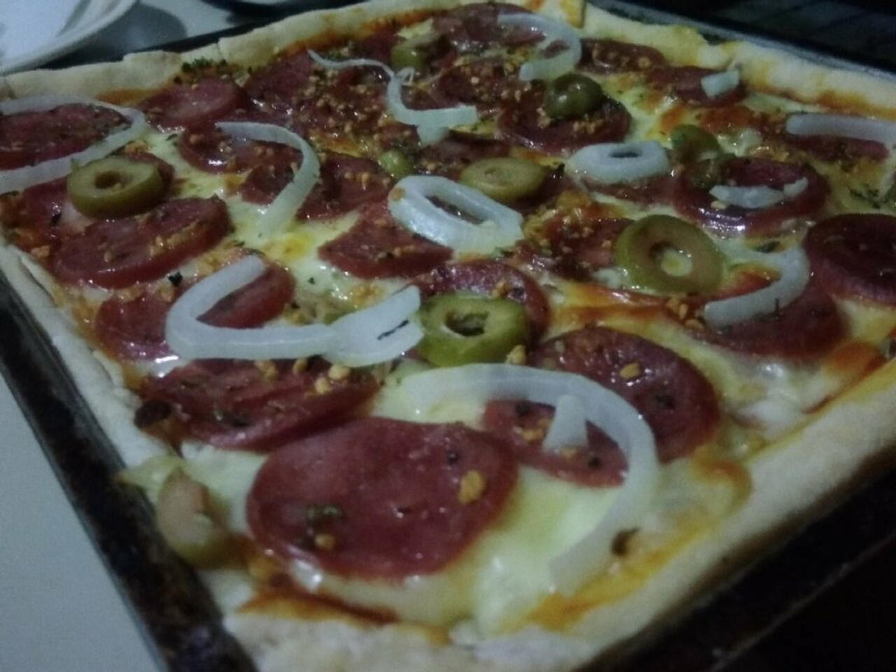 Pizza rapida feita em menos de 30 minutos, 5 de preparação, 15 de pré assamento, +/- 5 para o recheio