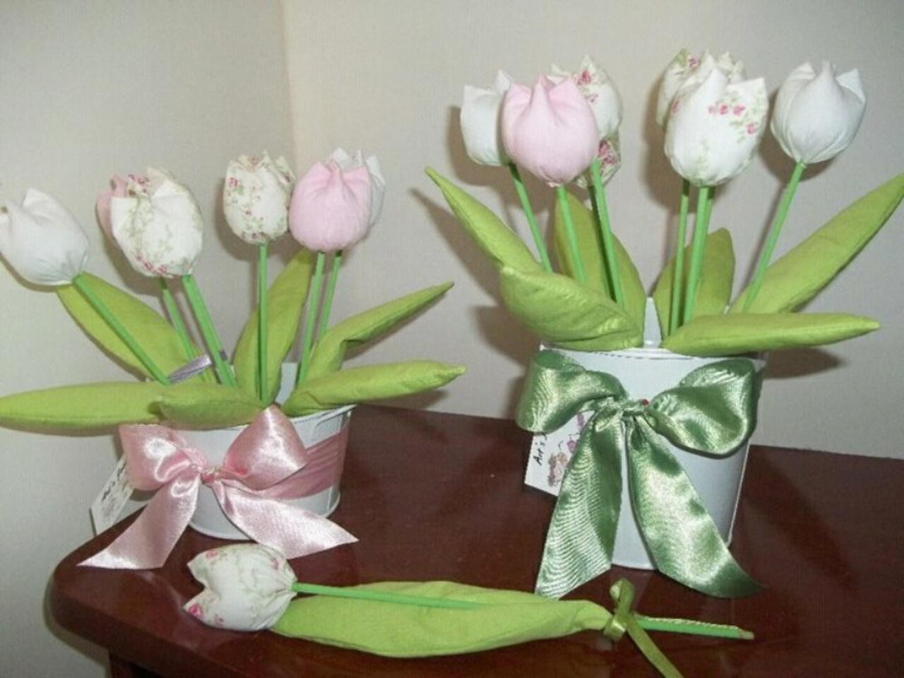 tecido eatpado e liso, palito de churrasco, tinta, argila, gita de cetim e um vasinho