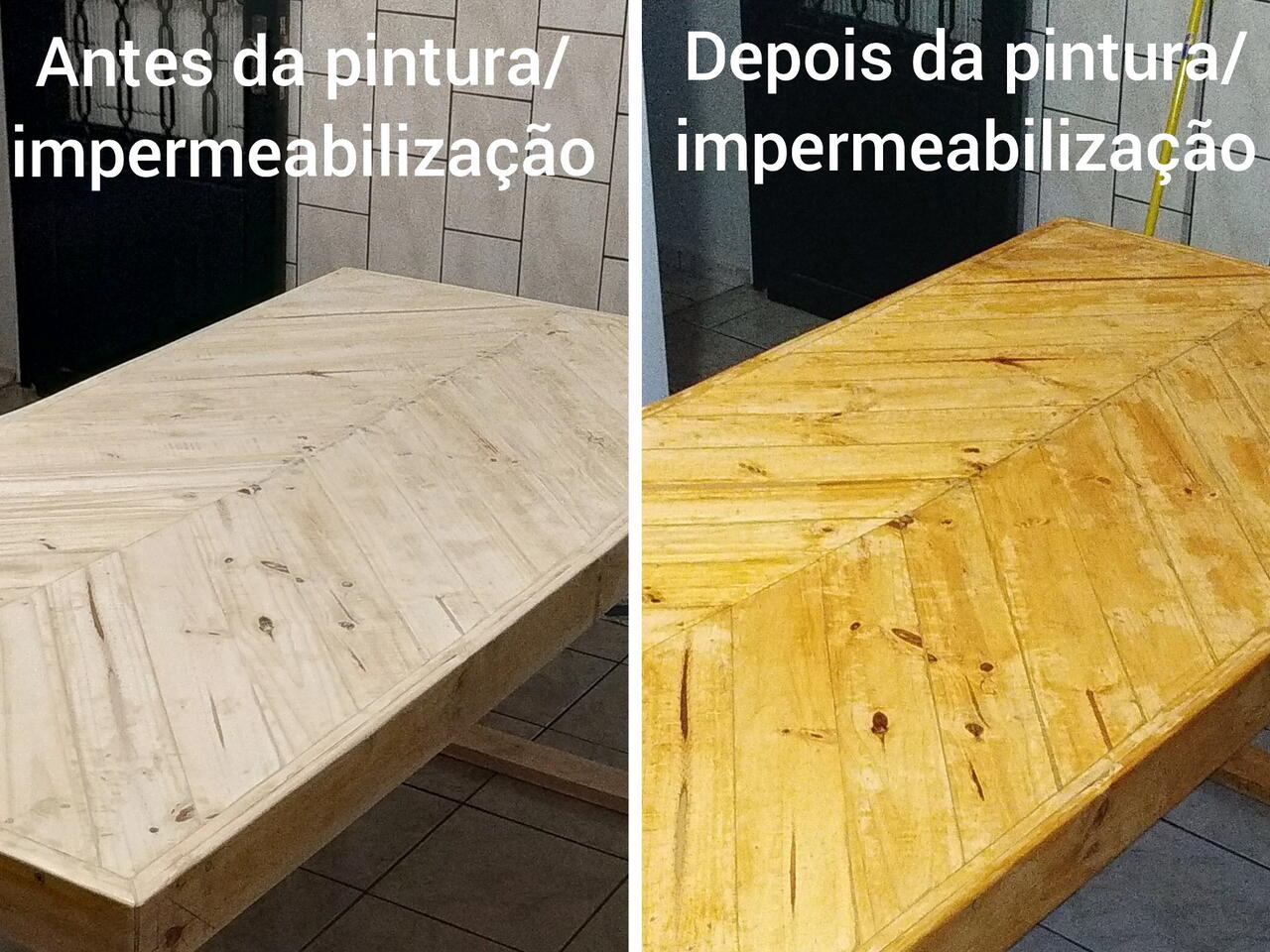 Tinha uma mesa simples na cozinha. Ao invés de comprar outra, resolvi fazer. Achei que ficou muito bom, mesmo eu começando a mexer com marcenaria há apenas 06 meses. Pintura foi feita com Polisten (Stain impregnante).