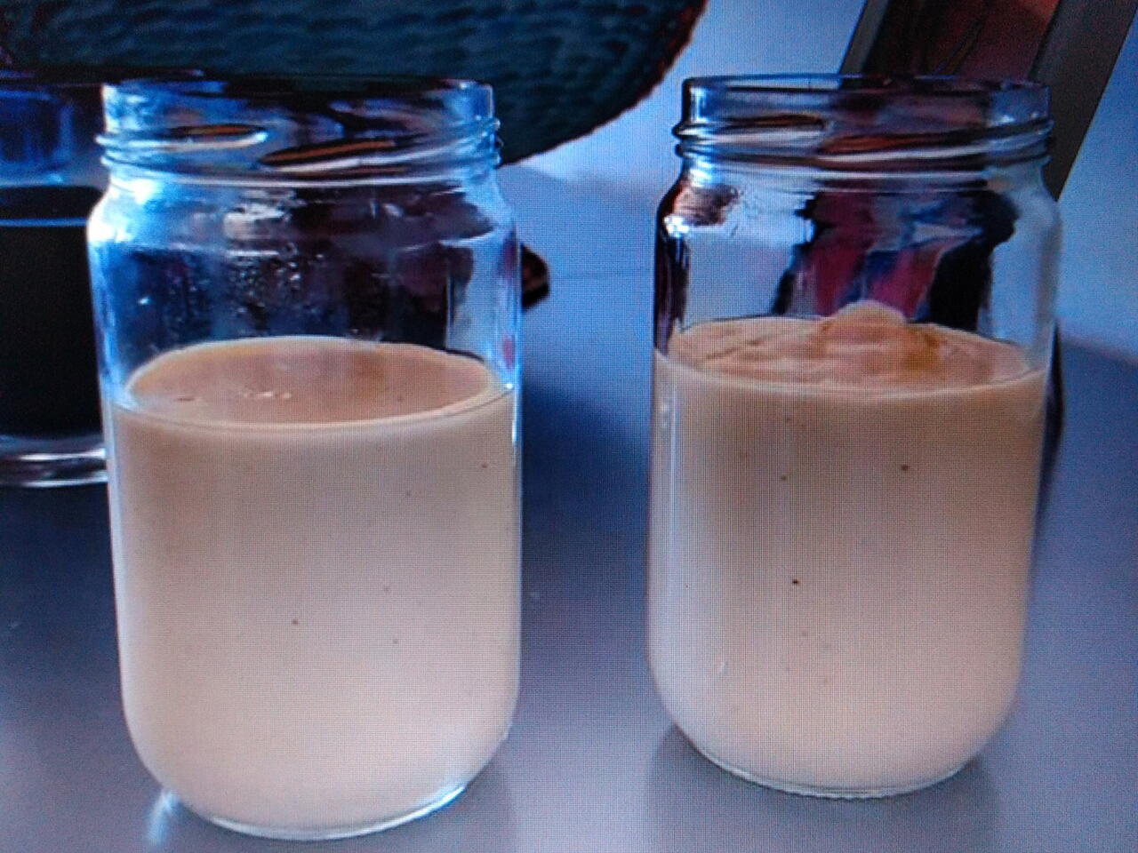 La llet vegetal, els 3 vermells d'ou, dues cullerades per endolcir, dues de farina d'arròs, canyella i la pell de llimona