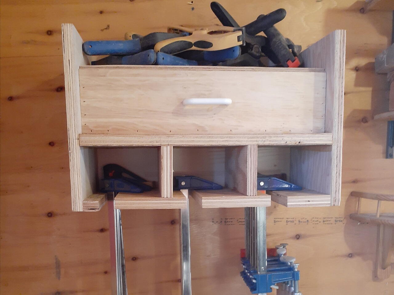 This is a project that I recently completed. It has been on my to do list for a long time as prior to this build, I had my clamps in a milk crate, while some of the bigger ones were on a shelf. Now I have a perfect place for them all. Super happy with the way it turned out, though there are a few mistakes.