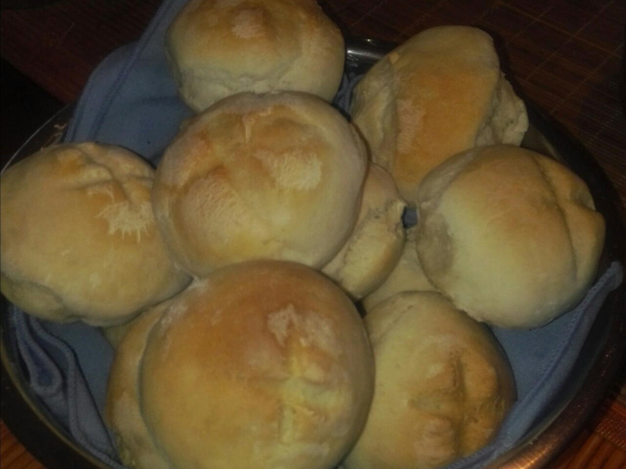 Pon los pancitos en una asadera y lleva al horno 40 minutos a 180 grados y sirve caliente