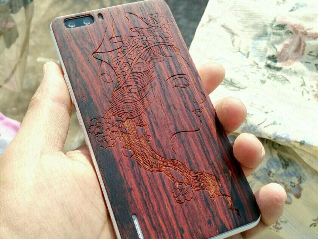 粘在手机后壳的木贴片