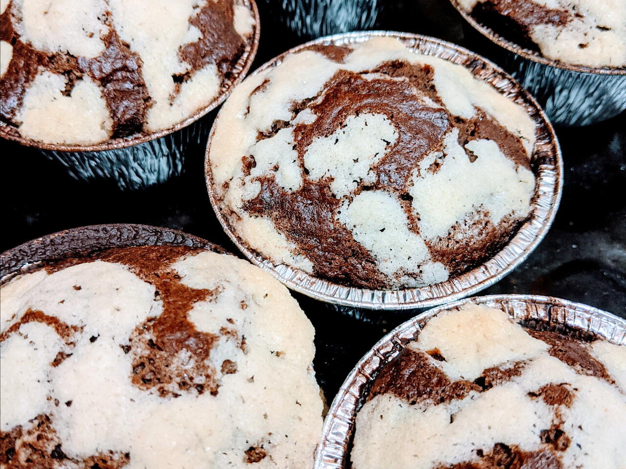 Suchou směs vmícháme do tekuté a vzniklé těsto vlijeme do forem na muffiny (cca 12).