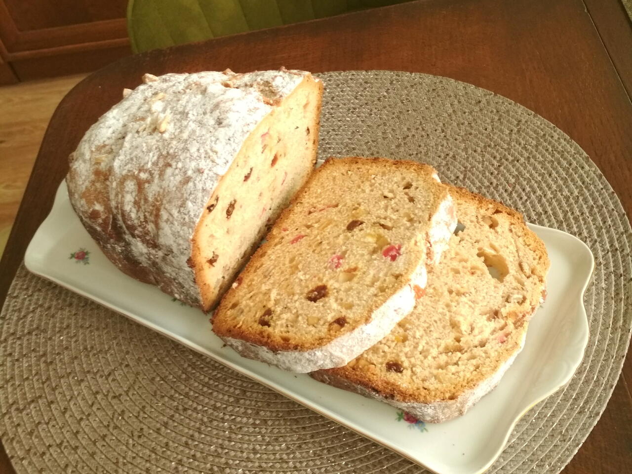 V druhé fázi hnětání přidáme kandované ovoce a rozinky namočené v rumu a ořechy. Poté těsto bude kynout 30 minut a pak se začne péct.