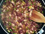 Přisypeme kukuřici a pořádně promícháme. Přidáme kečup a necháme prohřát.