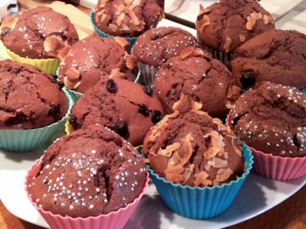 Naplníme košíčky,muzeme do vnitr dat horkou čokoládu,jako překvapení,a nakonec ozdobit např. kokosem,hrozinkama,oriškama,cokoladou..a pečeme cca 20 minut..DOBROU CHUŤ😇