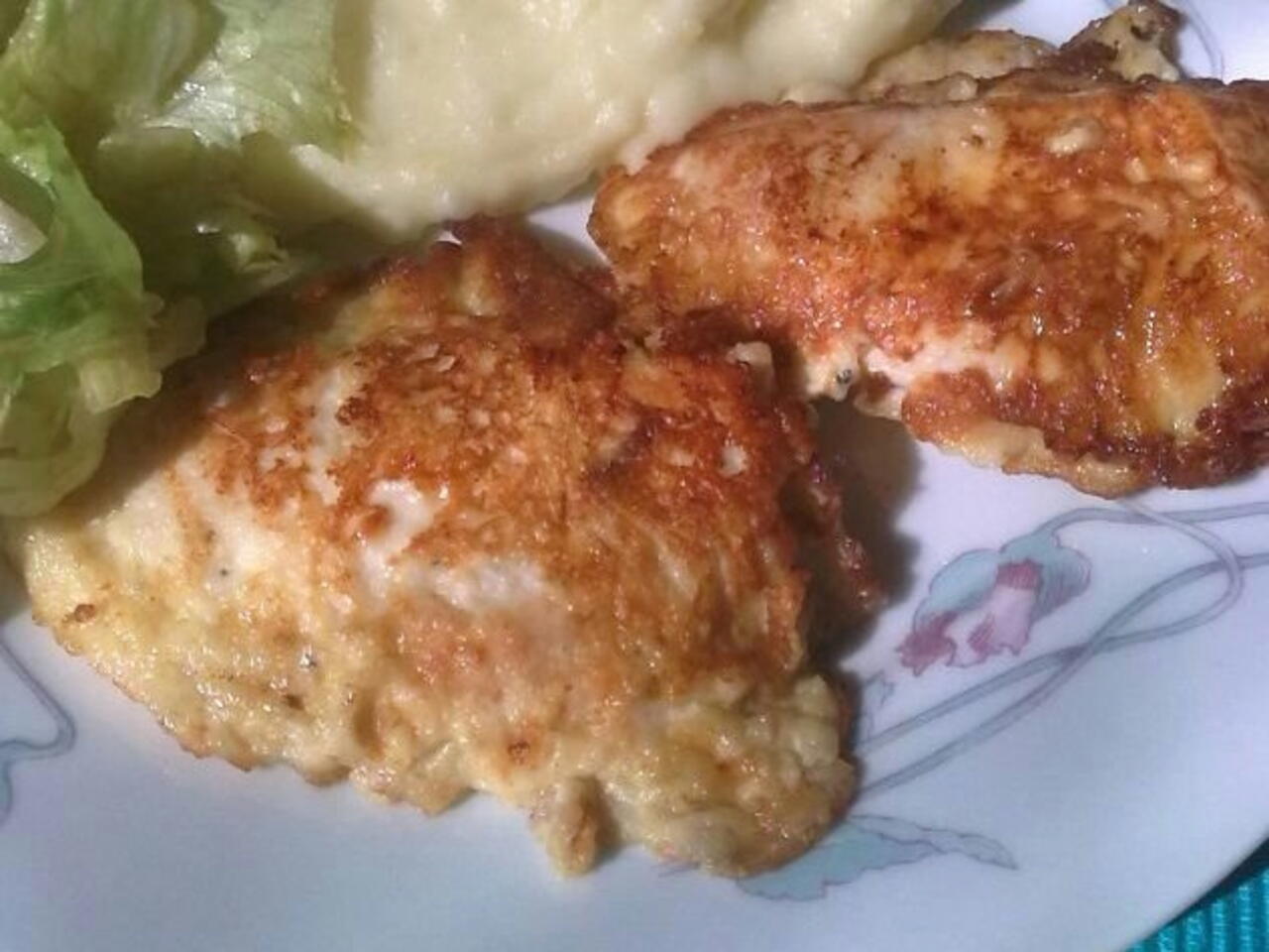 Vejce smícháme s moukou a mlékem a nastrouhaným sýrem. Řízky jen ponoříme do této směsi a osmažíme.