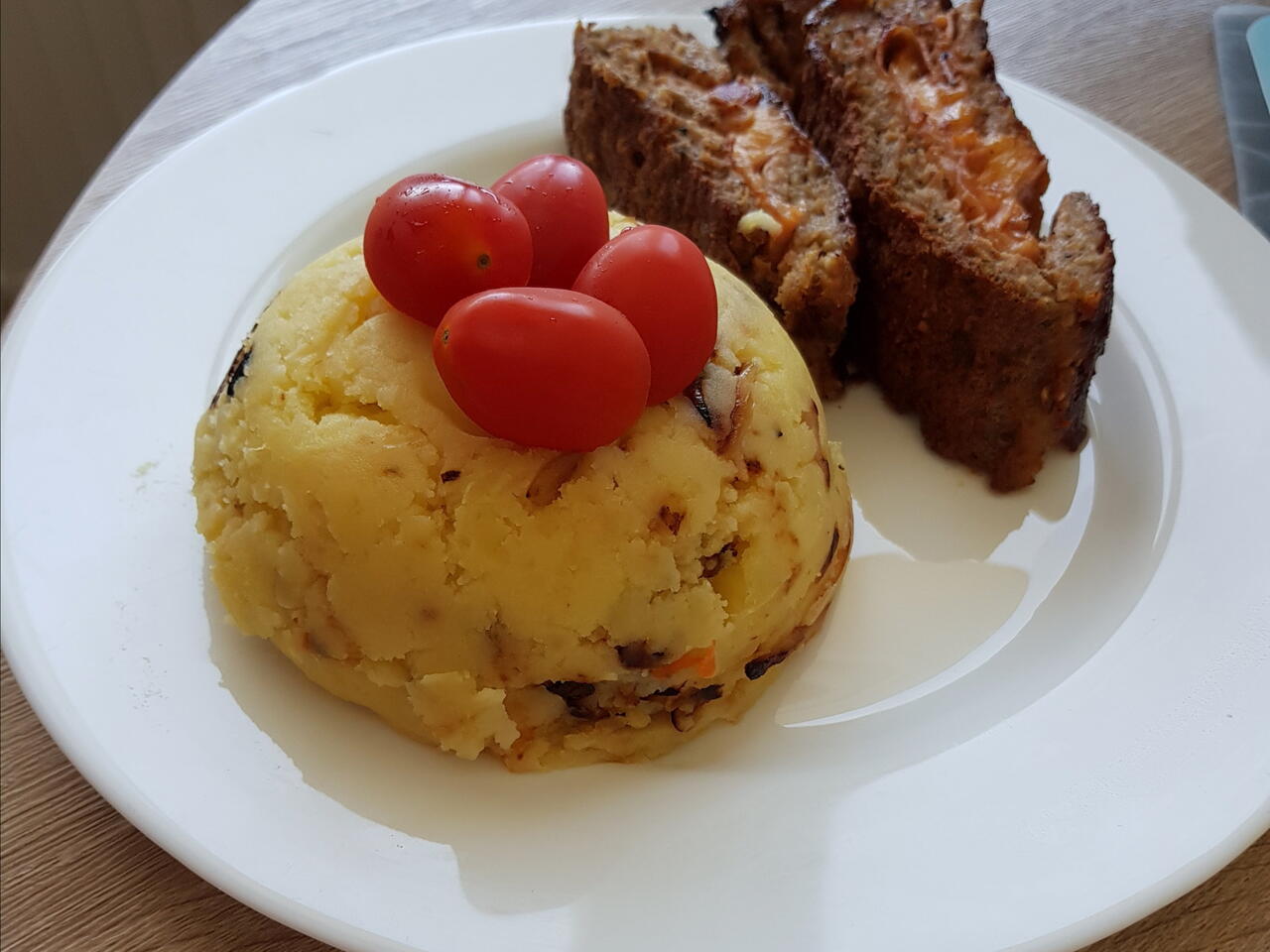 Plněná Sekaná Se Šťouchanými Brambory S Osmaženou Cibulkou.