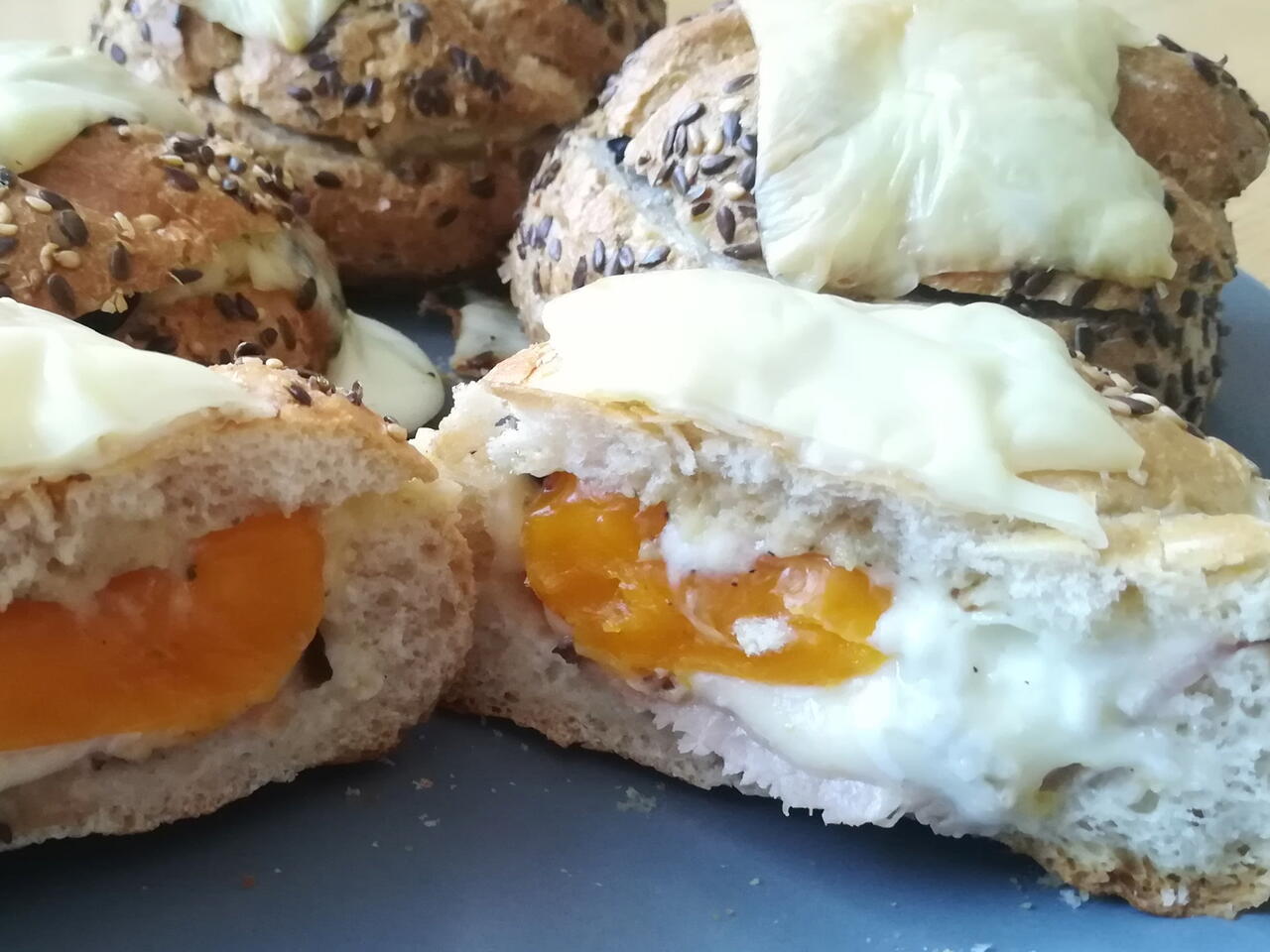 Přendáme na plech vystlaný pečícím papírem. A do každé Kaiserky rozklepneme jedno vejce.