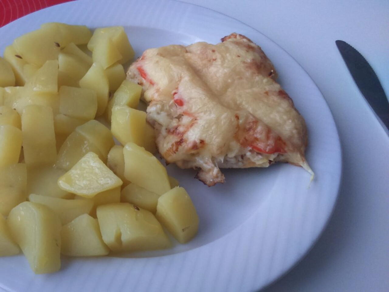 Maso nakrájíme na plátky, naklepeme, osolíme a opepříme. Pak pomažeme majonézou a posypeme nadrobno nakrájenou cibulí. Rajče nakrájíme na plátky asi půl cm tlusté které naskládáme na posypanou cibuli. .