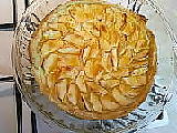 Na krém naskládáme na plátky nakrájená jablka (použila jsem 3 středně veliká jablka), poprášíme moučkovým cukrem a dáme péct do trouby bez horkého vzduchu na 200°C asi 35 minut do mírného opečení jablek.
