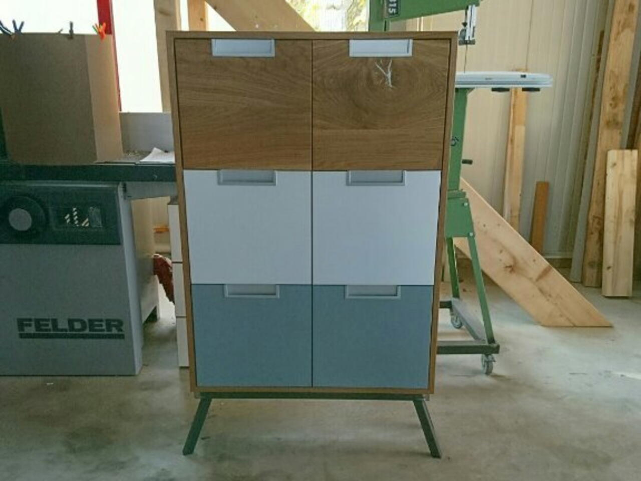Alles zuschneiden und verleimen. Schubladen ein passen.