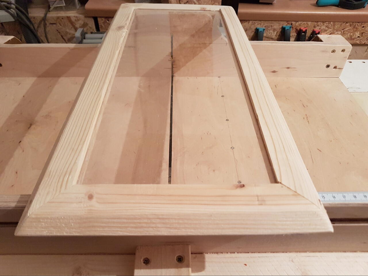 Plexiglasscheibe einpasswn und Rahreen zusamme leimen. Fixieren nach virbihren mit eine dünnen ca . 6 cm langen Schraube.