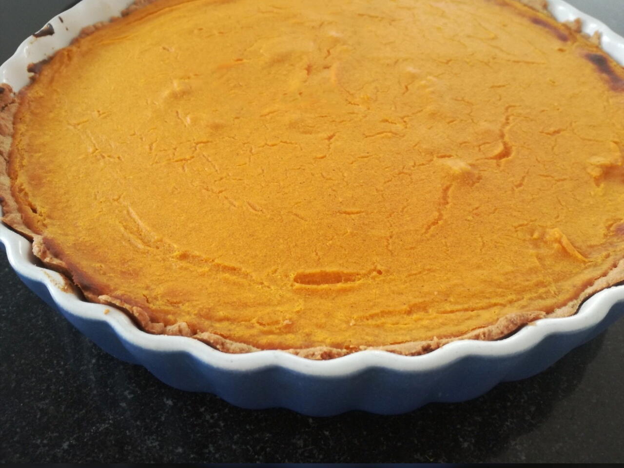 Kürbisfüllung hineingießen und für weitere 30-35 Minuten backen(evtl etwas länger).Stäbchenprobe und im offene Backofen auskühlen lassen.