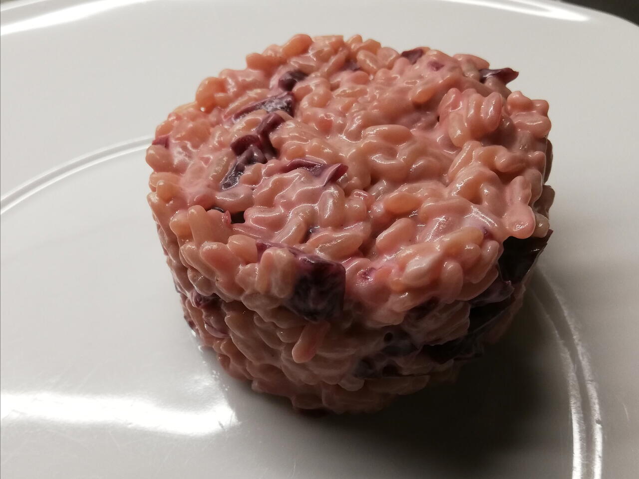 Risotto glasig werden lassen und mit heißer Brühe ablöschen, nach und nach die Brühe dazugeben und ständig rühren bis das Risotto leicht bissfest und schlotzig ist.