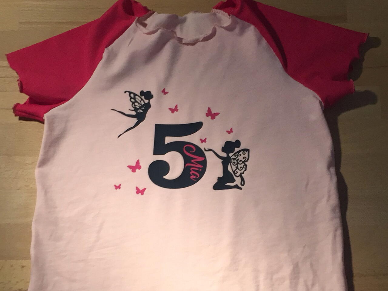 Jersey blau und Pink, Plotterbügelbild, Raglanschnitt von Klimperklein