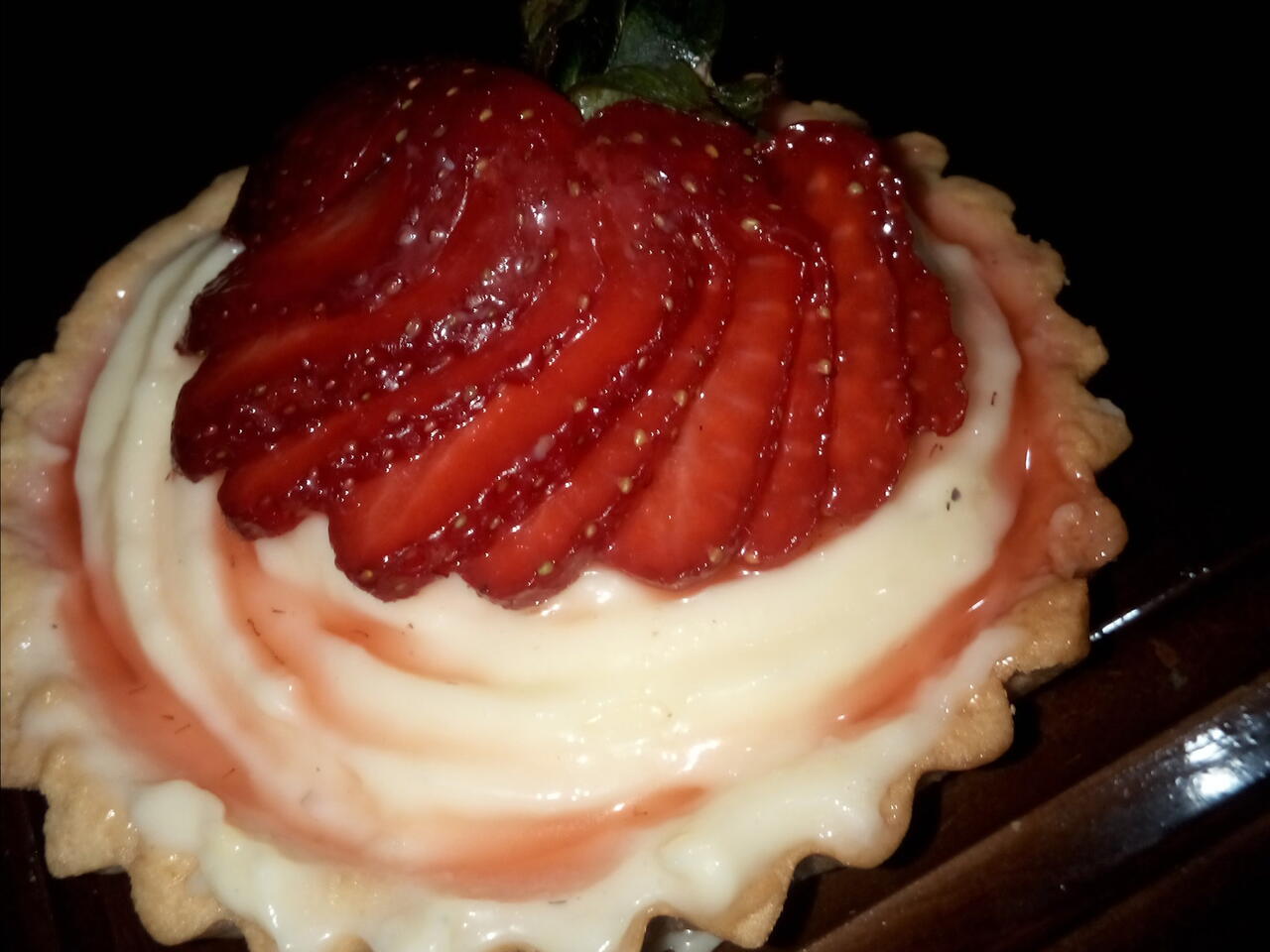 التشكيل بعد إخراج تارتولايت المطهوة نحشوها يا الكريمة ونزينها بالفراولة. ثم نتركها تبرد ثم نقدمها مع عصير وتزين إختيارية.