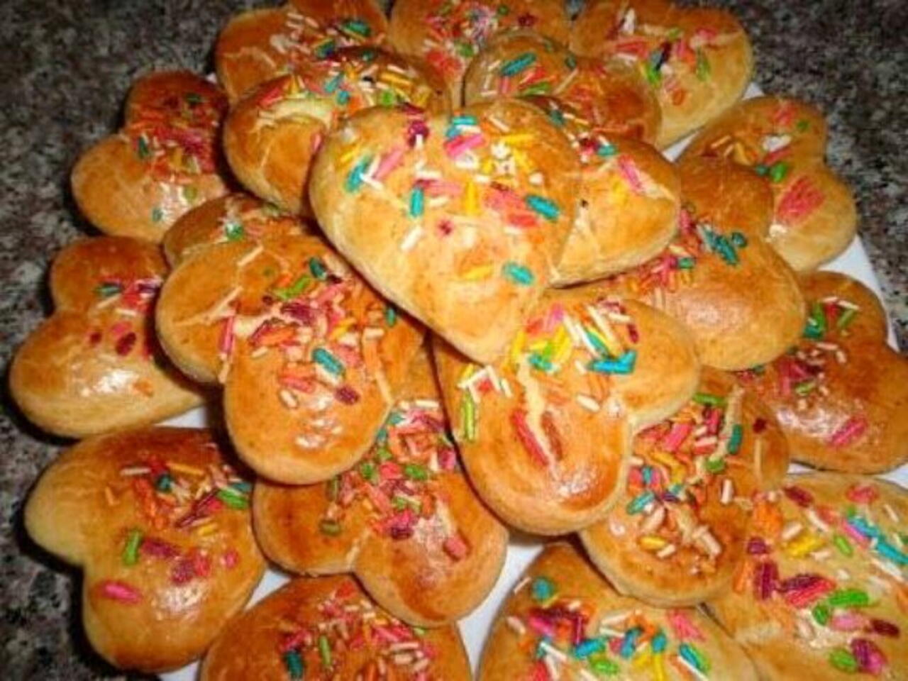نقوم ببسط العجينة ونطبعها بطوابع على الشكل الذي تفضلين ثم ترتبها في صينية مغطاة بورق الطهي ثم ندهنها بصغار البيض ونرشها بحلوة الشعيرة الملونة ثم ندخلها الفرن النسخه مسبقا على حرارة معتدلة