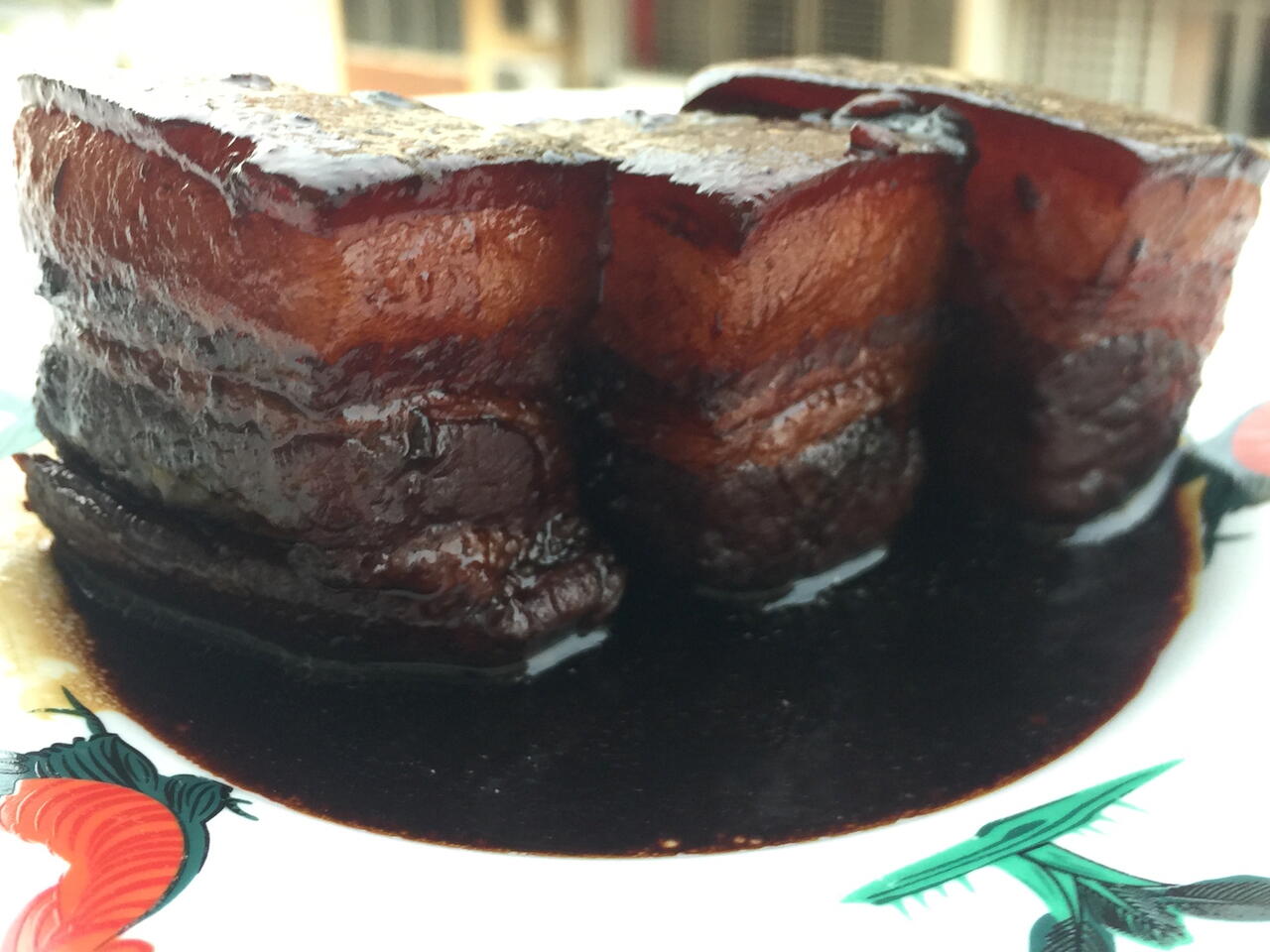Add water enough to submerge half of the pork belly then bring it to a boil then simmer down for 60 minutes with cover lid .