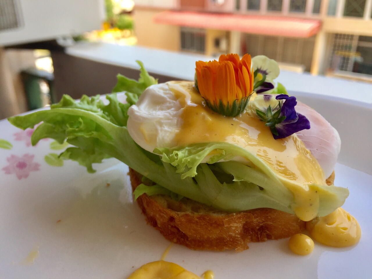 Egg Benedict with Hollandaise Sauce and Edible Flowers