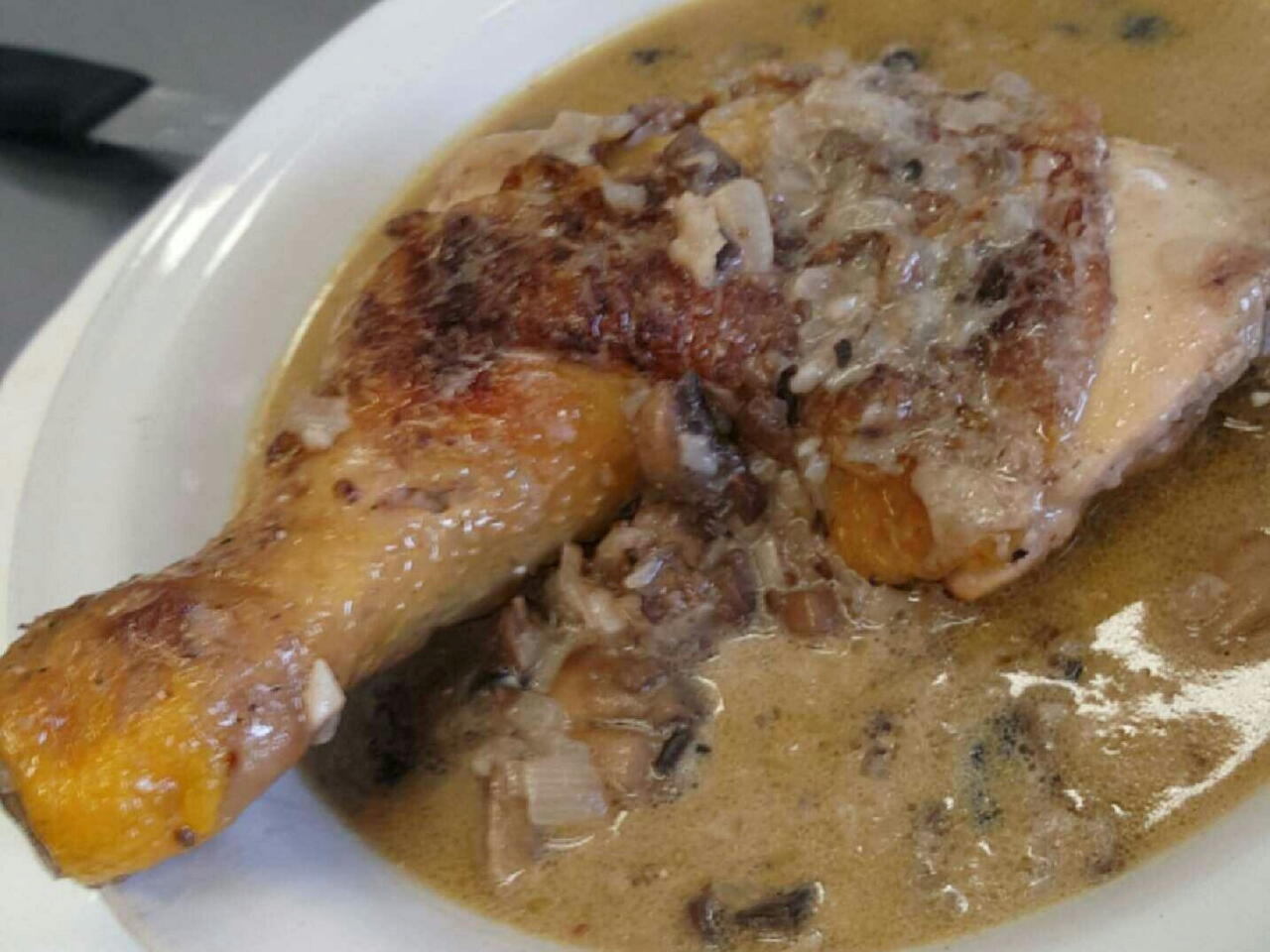 Retirar el pollo, Agregar la crema a la salsa y dejar reducir.