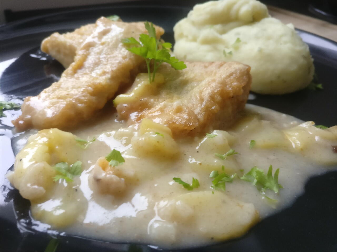 Receta facil de hacer y sabrosa Se necesita aproximadamente 30 min Como acompañamiento le hice un pure de patatas, por supuesto esto es opcional... Guten Appetit!!