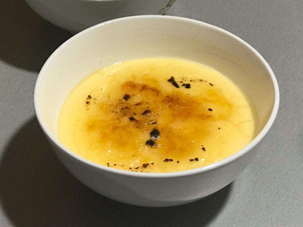 Antes de servir, caramelizar un poco de azúcar por encima de la crema con la ayuda de un soplete.
