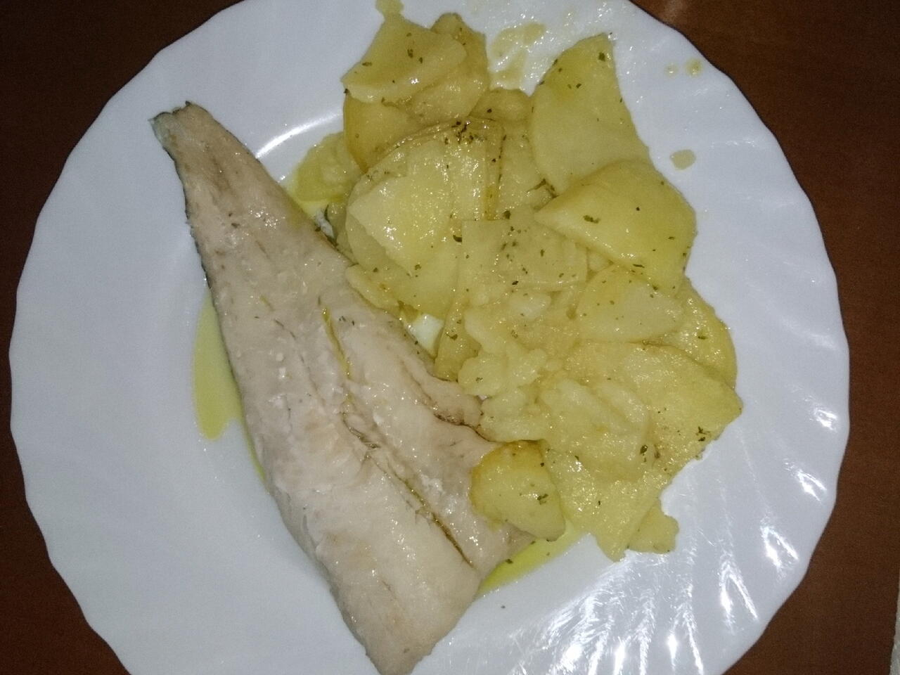 Se sacan las patatas, se echa perejil, el pescado, chorro de aceite, sal y vino blanco. Al horno otra vez hasta que se dore. Y ya ta.