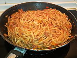 Cuando todo este listo añadir espaguetis y sazonar al gusto tras mezclar todo