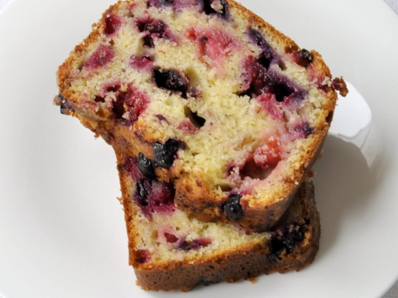 Ajoutez les fruits rouges, mélangez bien et versez la pâte dans un moule à cake légèrement huilé.