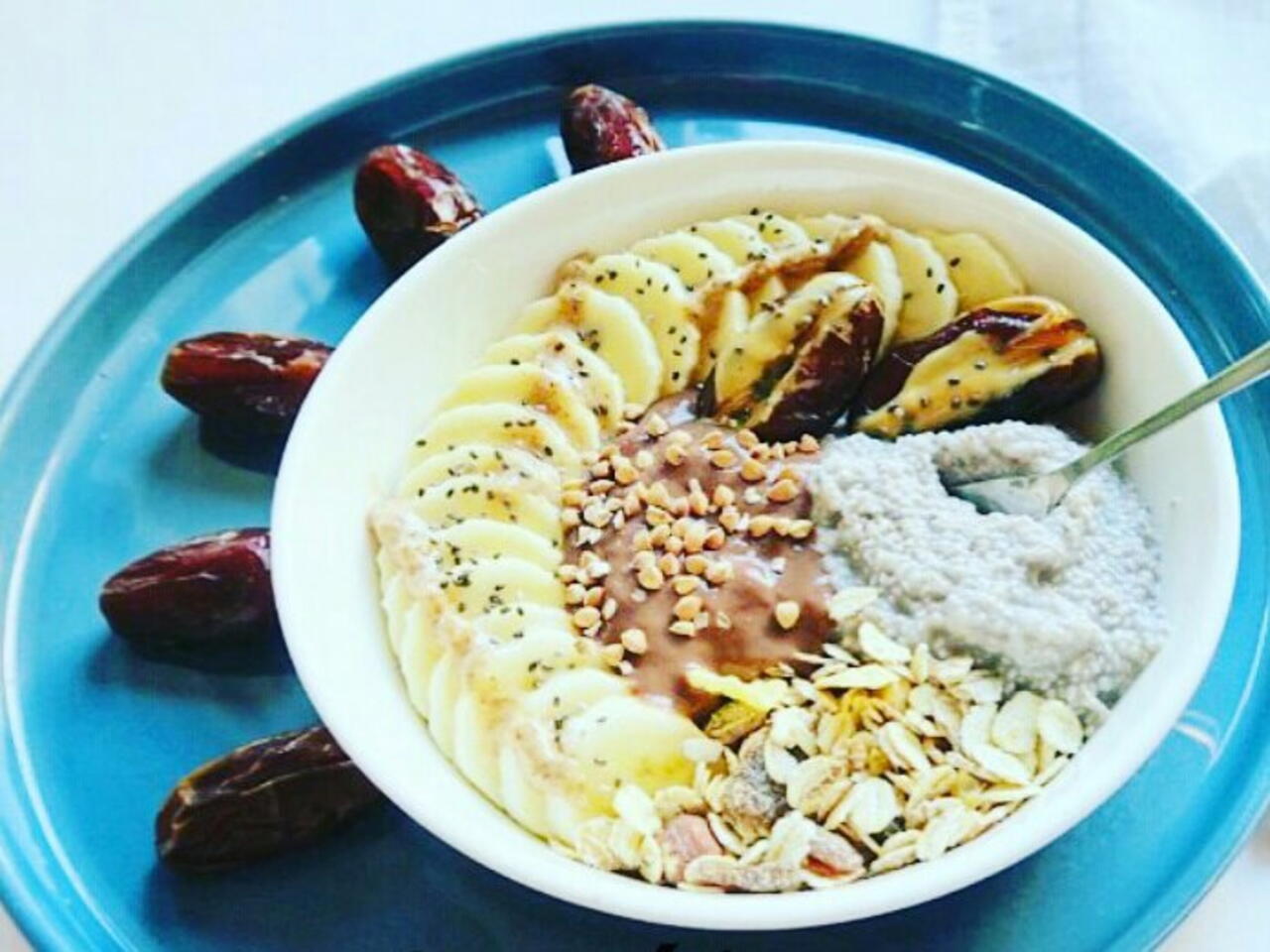 Ajoutez les flocons d'avoine, le soja dessert chocolaté et les graines de chia devenue gelatineuses