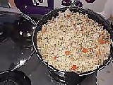 Ajouter l'oignon, le poivron, les carottes, les petit pois et l'ail et faire sauter pendant 1 minute. Ajouter le riz et la sauce soya et faire sauter de 2 à 3 minutes ou jusqu'à ce qu'ils soient bien cuits.