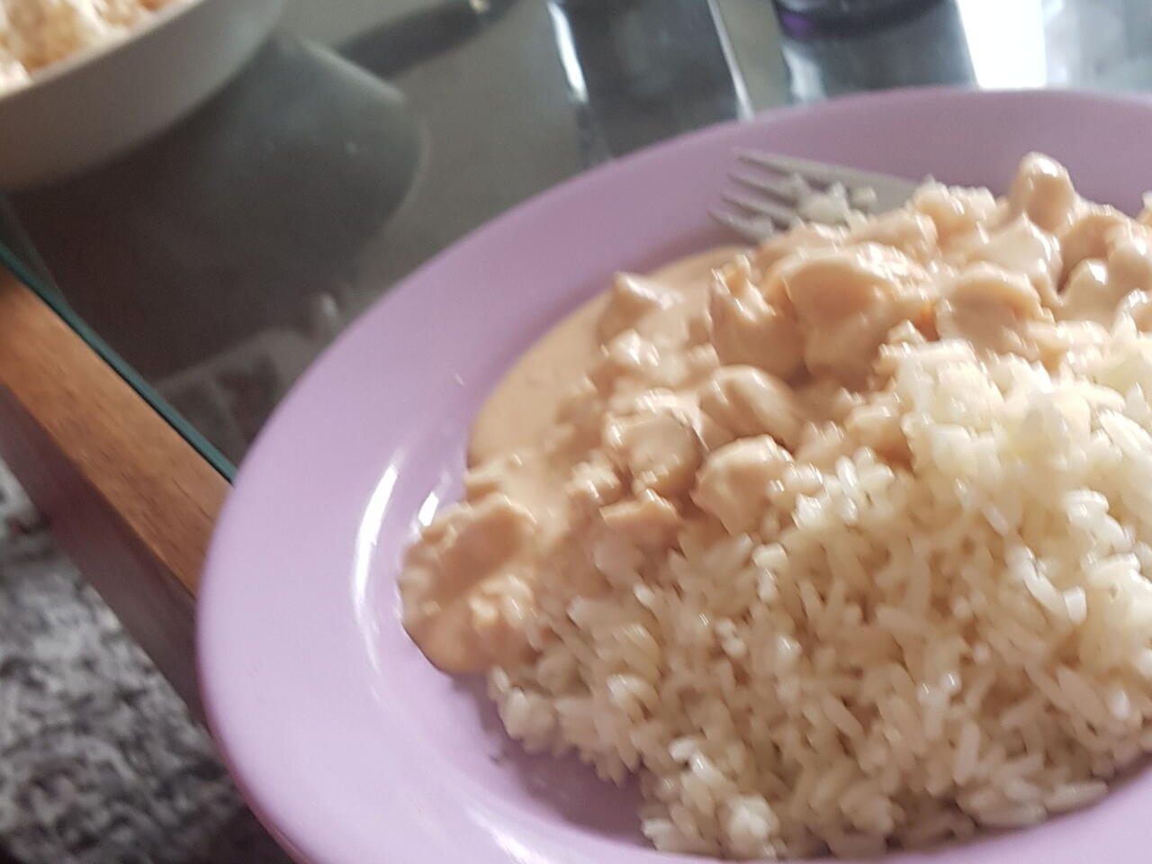 Introduire le poulet et l'oignon et remuer de temps en temps jusqu'à que le poulet soit un peu doré de tous les côtés, puis rajouté le cube de kinor.
