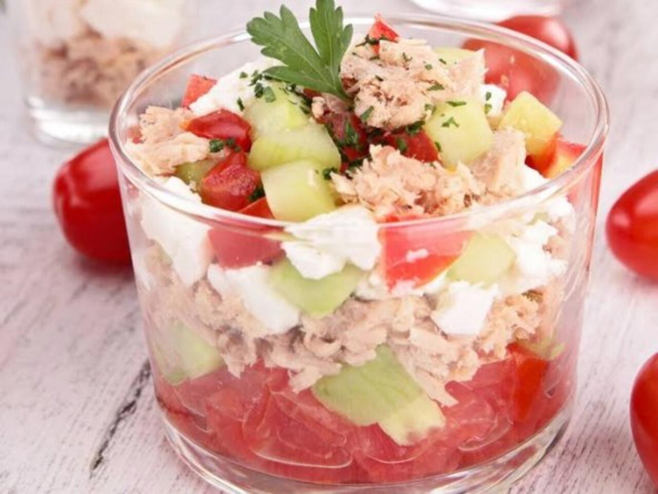 Verrine Concombre, Feta, Tomate Et Thon
