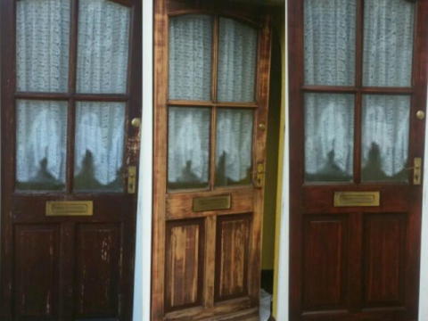 - Use 2 cabinet doors joined at the middle with pocket screws